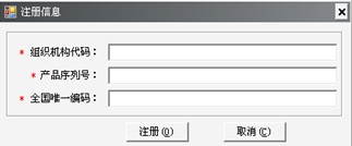 第四步:點(diǎn)擊登陸界面的“產(chǎn)品注冊(cè)”按鈕(如圖2-13),在注冊(cè)界面填寫新的組織機(jī)構(gòu)代碼、產(chǎn)品序列號(hào)、全國唯一碼,點(diǎn)擊“注冊(cè)”(如圖2-14),注冊(cè)成功之后登錄軟件即是最新的組織機(jī)構(gòu)代碼。