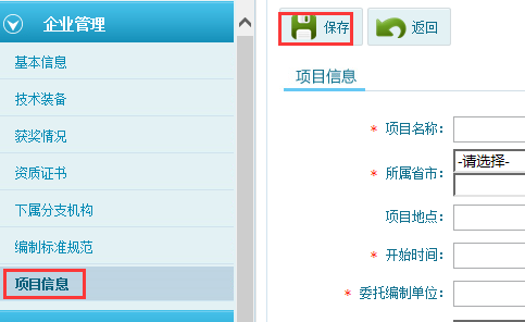 第七步:點(diǎn)擊項(xiàng)目信息模塊,點(diǎn)擊添加按鈕,填寫本單位的項(xiàng)目信息,填寫完成后點(diǎn)擊保存,如圖6-1-9: