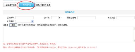 資質(zhì)變更主界面中,點擊“原資質(zhì)內(nèi)容”進入原資質(zhì)內(nèi)容主界面,首先錄入證書編號、副本數(shù)、原發(fā)證日期、有效期至,選擇資質(zhì)等級,然后點擊“生成”按鈕,資質(zhì)內(nèi)容顯示在文本框內(nèi)。如圖5-3-4