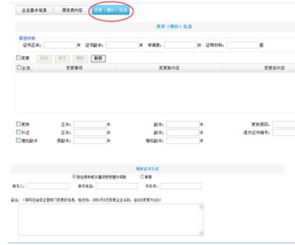 第二步:點擊“添加”,彈出變更頁面,該頁面由企業(yè)基本信息、原資質(zhì)內(nèi)容、變更(增補)信息三部分組成。如圖5-3-2