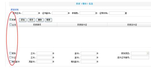 第三步:在“變更(增補)信息”頁面,選擇“變更、更換、補證、增加副本”選項。選擇之后,后面都可以進行對應(yīng)的操作。如圖5-3-6