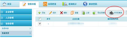 第五步:上報成功之后,選中變更內(nèi)容,“打印變更表”,只有已上報的備案表才有條形碼。如圖5-3-8