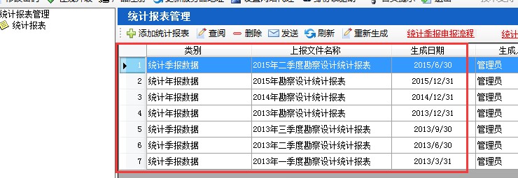 查看生成統(tǒng)計(jì)報(bào)表的年份。在統(tǒng)計(jì)報(bào)表里上報(bào)文件名稱里可查看已添加的統(tǒng)計(jì)報(bào)表年份,如圖6-11-1: