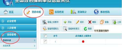 第一步:點擊“資質申報-資質管理-資質申請”,右側彈出對話框,會顯示已上報的資質申請。如圖4-4-1: