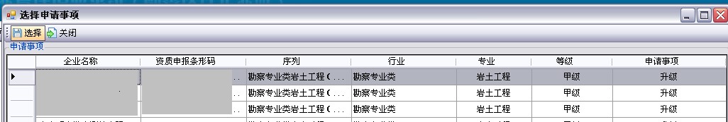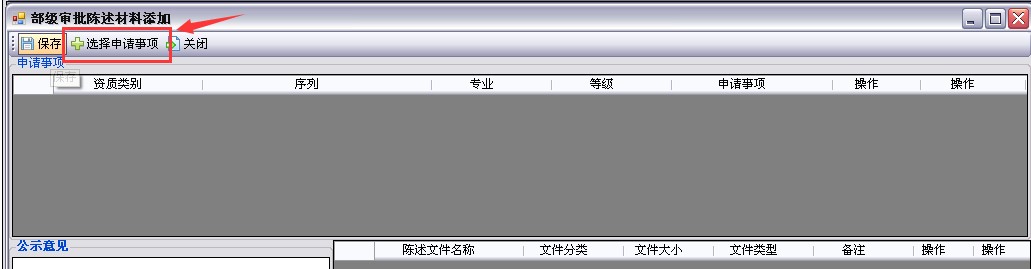 第三步:在打開的申請(qǐng)事項(xiàng)窗口內(nèi),選擇對(duì)應(yīng)需要添加陳述材料的數(shù)據(jù)。如圖:32-2-3