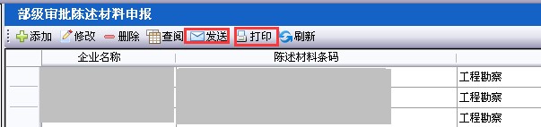 第八步:在陳述材料上報(bào)中會(huì)生成一條數(shù)據(jù)上報(bào)記錄,同時(shí)生成陳述材料條碼,點(diǎn)擊“發(fā)送”按鈕進(jìn)行發(fā)送,發(fā)送后打印陳述材料。如圖32-2-8