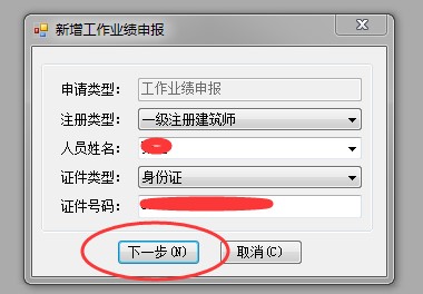第二步:在彈出的“新增工作業(yè)績”界面填寫相關(guān)信息,然后點擊“下一步”(如圖);