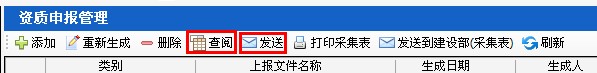 第一步:選中已生成的資質(zhì)申請(qǐng)表,點(diǎn)擊“發(fā)送”按鈕(如圖7-26),選擇網(wǎng)絡(luò)發(fā)送。