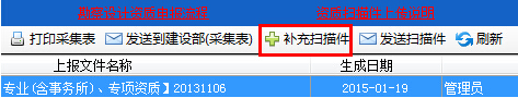 第一步:生成完資質(zhì)申請(qǐng)表后,點(diǎn)擊“補(bǔ)充掃描件”按鈕,如圖27-1-1:
