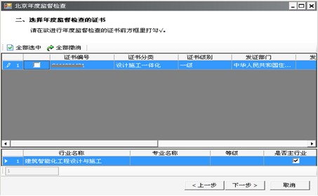 5、點(diǎn)擊“下一步”在第二項(xiàng)“選擇年度監(jiān)督檢查的證書”中勾選證書信息(如圖20-80):