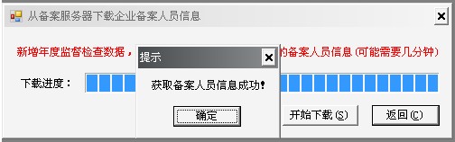 2、點(diǎn)擊“開始下載”按鈕,開始下載備案人員信息,下載完成后則會(huì)彈出成功界面(如圖20-77):