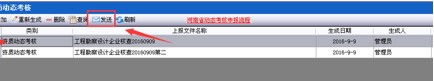 第一步:選中已生成的資質(zhì)動(dòng)態(tài)考核表,點(diǎn)擊“發(fā)送”按鈕。選擇網(wǎng)絡(luò)發(fā)送。如圖(33-3-1)