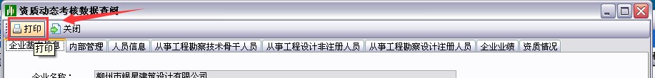 第二步:點(diǎn)擊如上圖所示的“查閱”按鈕,選擇“打印”按鈕,即可打印出帶有條形碼的工程勘察設(shè)計(jì)企業(yè)核查申請(qǐng)表。如圖(33-3-2)