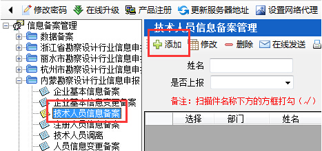 第一步:點(diǎn)擊“內(nèi)蒙勘察設(shè)計(jì)行業(yè)信息申報(bào)”—“技術(shù)人員信息備案”,添加新增人員,如圖28-8-1: