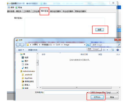 第二步:選擇人員,點(diǎn)擊“修改”,彈出人員信息補(bǔ)充界面,選擇“照片簽名”分欄,進(jìn)行照片簽名的添加。如圖28-8-2: