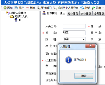第三步:填寫(xiě)基本信息、專(zhuān)業(yè)信息、執(zhí)業(yè)信息、培訓(xùn)信息等信息內(nèi)容,然后點(diǎn)“保存”按鈕,如圖28-7-3: