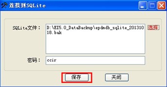 第四步:選擇好了數(shù)據(jù)庫(kù)之后,點(diǎn)擊“打開”,然后在彈出的連接到SQlite界面點(diǎn)擊“保存”按鈕(如圖1-2-4),則會(huì)彈出保存字符串成功的提示(如圖1-2-5):