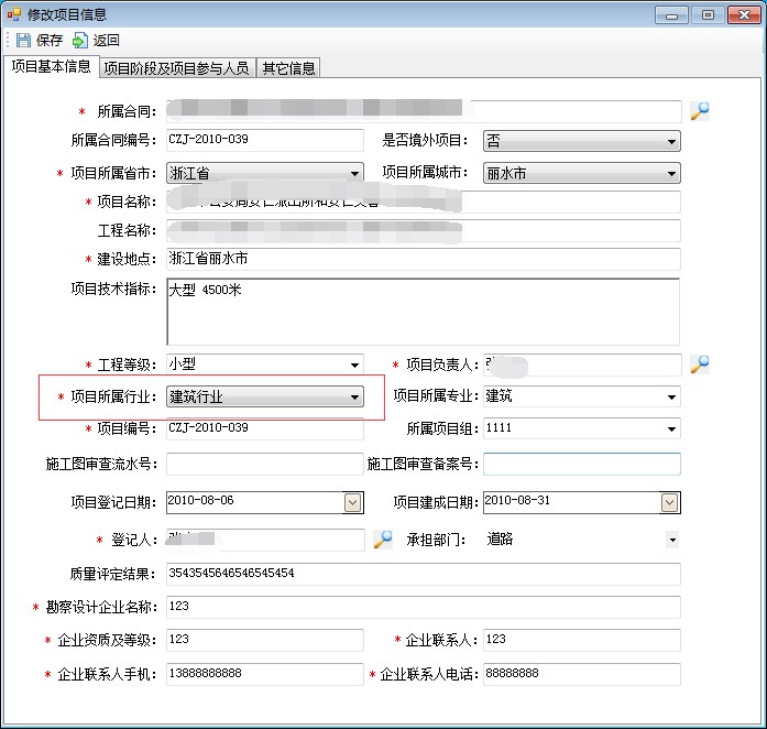 第三步:點(diǎn)擊合同及項(xiàng)目管理,勘察設(shè)計(jì)項(xiàng)目管理,選擇要修改的項(xiàng)目點(diǎn)擊修改,彈出修改項(xiàng)目信息界面,查看項(xiàng)目所屬行業(yè),與第二步中申請(qǐng)行業(yè)一致即可。如圖7-16-3。
