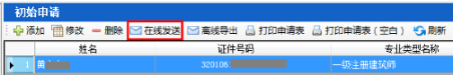 第六步:返回初始申請(qǐng)界面,選擇已生成的初始注冊(cè)申請(qǐng),點(diǎn)擊“在線發(fā)送”按鈕,完成初始注冊(cè)申報(bào)。(如圖12-9-4):