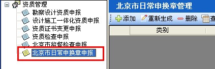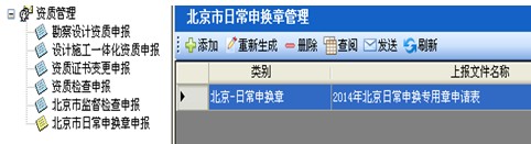 1、點(diǎn)擊“資質(zhì)管理”模塊下的“北京市日常申換章申報(bào)”子模塊(如圖20-193):