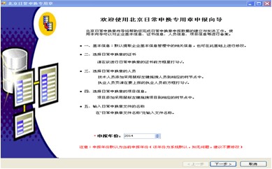 3、獲取人員和證書信息成功后,將彈出北京市日常申換專用章申報(bào)向?qū)Вㄈ鐖D20-195):