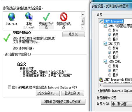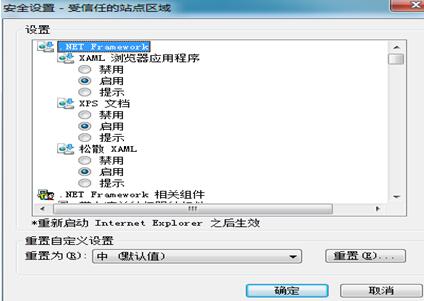 第四步:將安全設(shè)置內(nèi)的所有設(shè)置全部啟用,瀏覽器設(shè)置完成,這里只對(duì).Net framework進(jìn)行舉例,其它也同樣需要設(shè)置,如圖1-1-4: