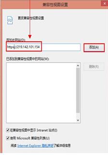 第二步:兼容性視圖頁(yè)面設(shè)置中,將規(guī)劃網(wǎng)站的地址添加到空白框內(nèi),點(diǎn)擊“添加”,如圖 1-1-8:
