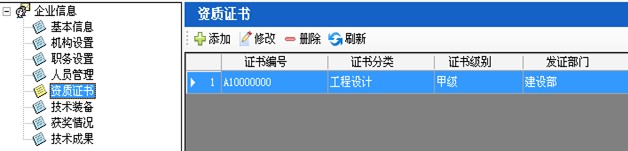 第二步:選中主行業(yè)資質證書后,點擊“修改”按鈕,彈出資質證書界面(如圖6-2):