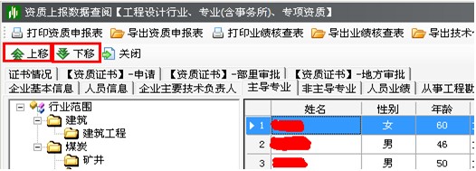 第三步:點(diǎn)擊“主導(dǎo)專業(yè)”字段,先點(diǎn)擊左邊的專業(yè)名稱,在右邊顯示的列表中,先選擇相應(yīng)的專業(yè)文件夾,然后選擇人員信息記錄,進(jìn)行點(diǎn)擊“上移”、“下移”按鈕即可排序(如圖7-23):