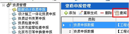 第二步:選中生成后的資質(zhì)申報文件,點擊“查閱”,彈出“資質(zhì)上報查閱”對話框(如圖7-17):