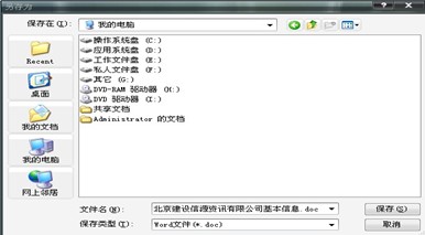 第三步:點擊“導(dǎo)出資質(zhì)申報表”,彈出資質(zhì)申報表導(dǎo)出窗口,點擊“保存”即可保存導(dǎo)出“資質(zhì)申報表”(如圖7-18):