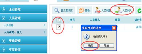 第三步:點(diǎn)擊“確定”后,系統(tǒng)彈出提示“調(diào)入成功”即為成功調(diào)入該人員。如圖3-2-6